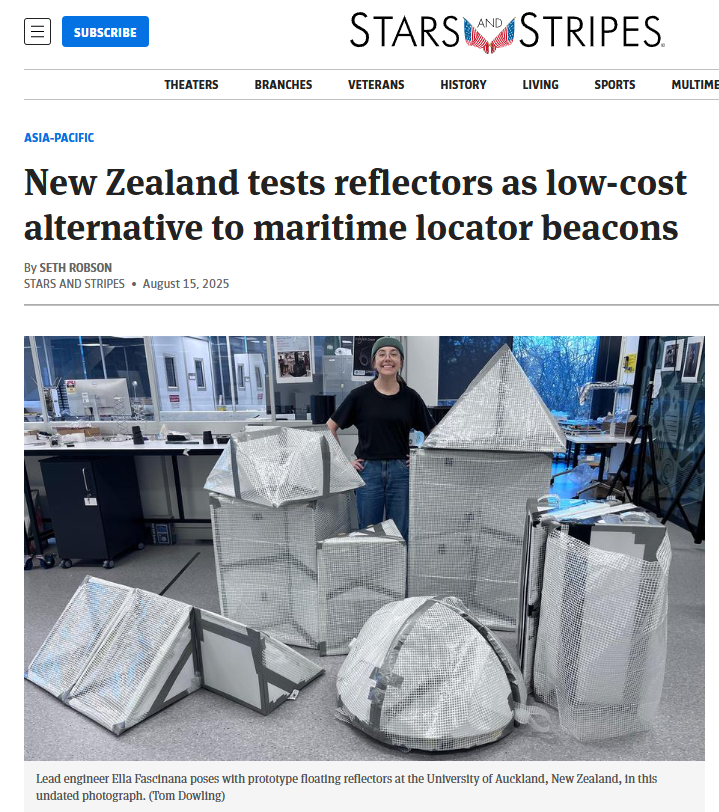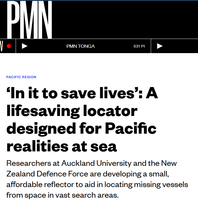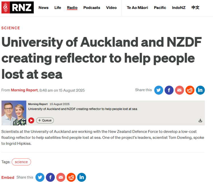 "University of Auckland and NZDF creating reflector to help people lost at sea"