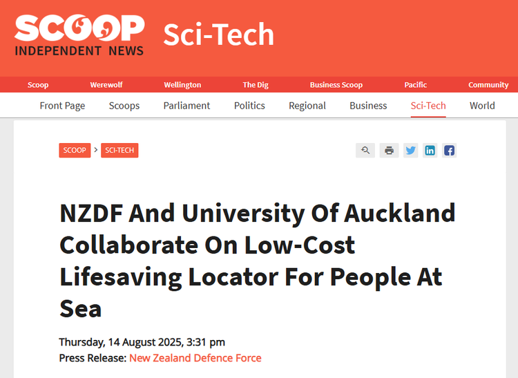 "NZDF And University Of Auckland Collaborate On Low-Cost Lifesaving Locator For People At Sea"